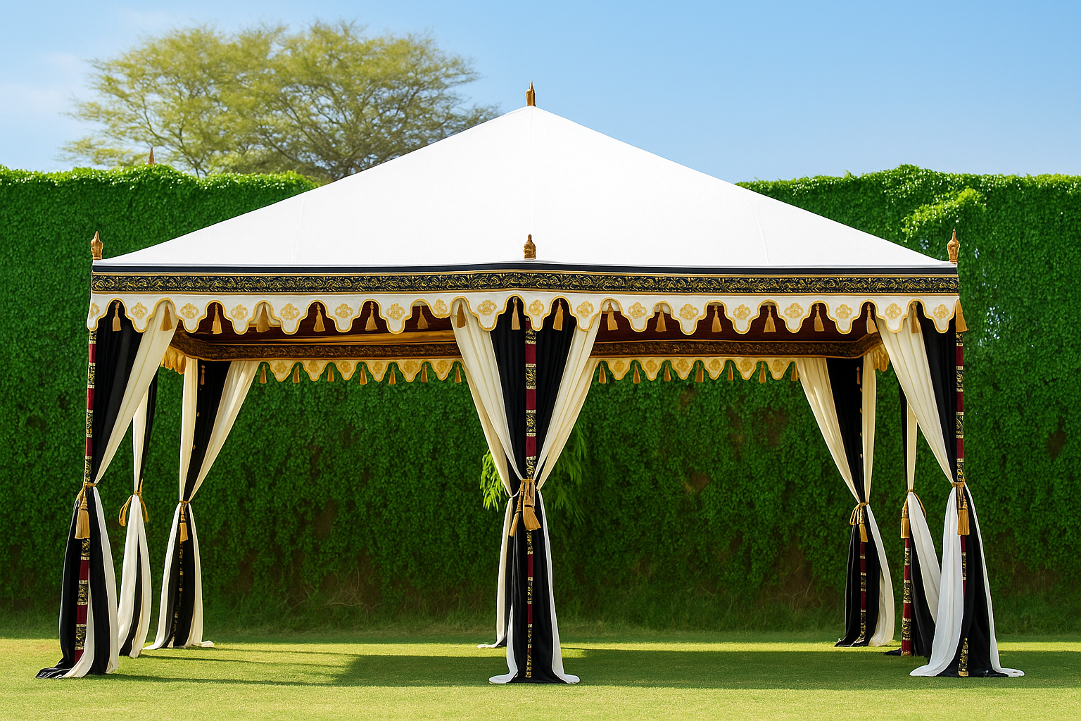 We manufacture and export an extensive range of Ottoman Tents, including Medieval, Royal, and traditional designs. Made with premium materials, these weather-resistant and durable tents bring historic charm and elegance to any setup.